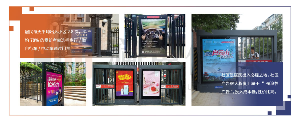 社区门禁广告-与社区广告其他投放形式相同,社区门禁广告同样是精准投放。随着城市版图的不断扩大,每个区域都有不同的收入群体
